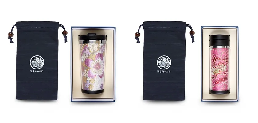 「ほっと電報」より「浅草たつみや 着物タンブラー」を発売! 西陣正絹帯の最も美しい柄の部分を使用したお祝い用商品!