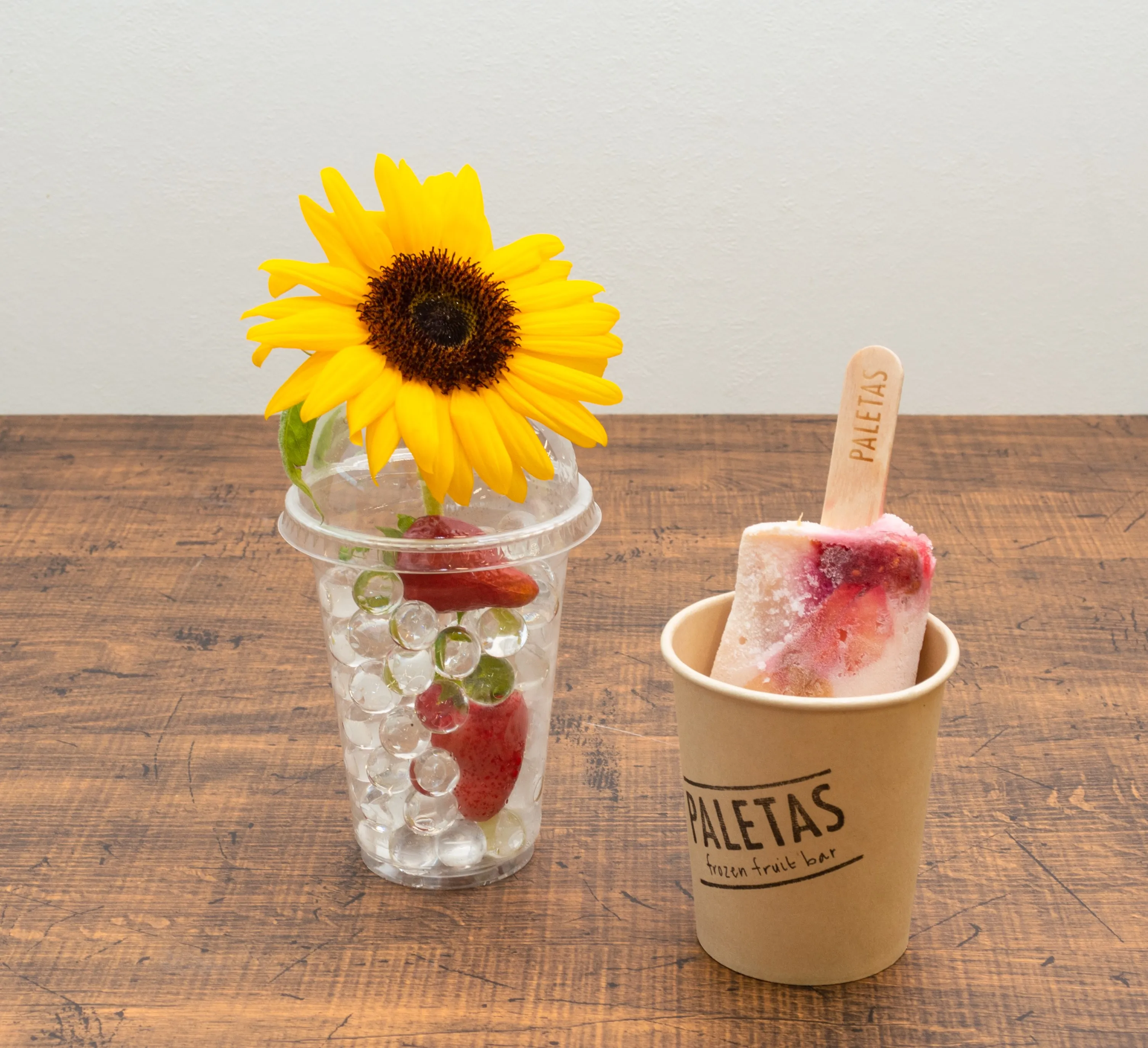 アトレ恵比寿内に期間限定でオープンするパレタスとHibiya-Kadan Styleのコラボレーションによるポップアップショップでは、香る食用バラ「さ姫」を使ったアイス「ローズ」をはじめとするアイスバーを、ドライフラワー付きのポストカードとセットで販売するほか、保水用ゼリー入りのフラッペカップに花をアレンジした「フラワーフラッペ」等の可愛らしく、写真映えする限定商品を販売します。