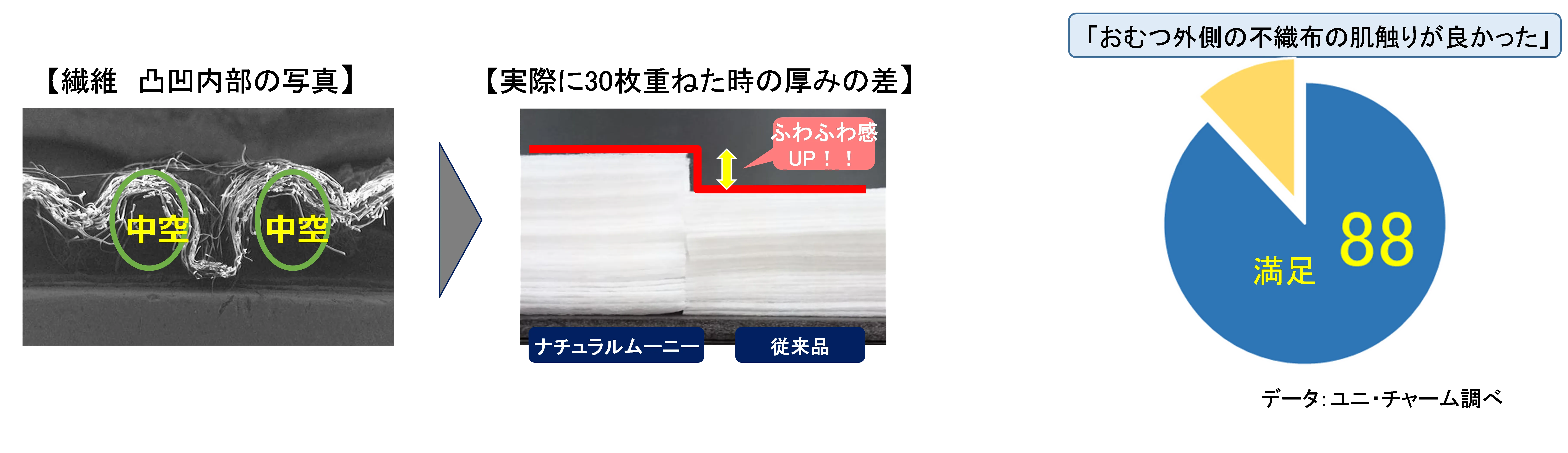 そして、この研究を通して、赤ちゃんにとっておむつの肌触りが良いことはもちろん、親も触っていて気持ちよく感じるおむつの開発に取り組みました。