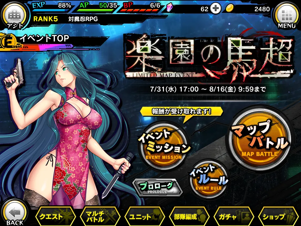 株式会社インフィニブレイン(本社:大阪市中央区、代表取締役:市川 忍)は、オンラインゲームプラットフォーム「DMM GAMES」( http://games.dmm.com/ )にて配信している、近未来くノ一ロールプレイングゲーム『対魔忍RPG』において、7月31日(水)より限定ユニットを獲得できる期間限定イベントを開催いたします。