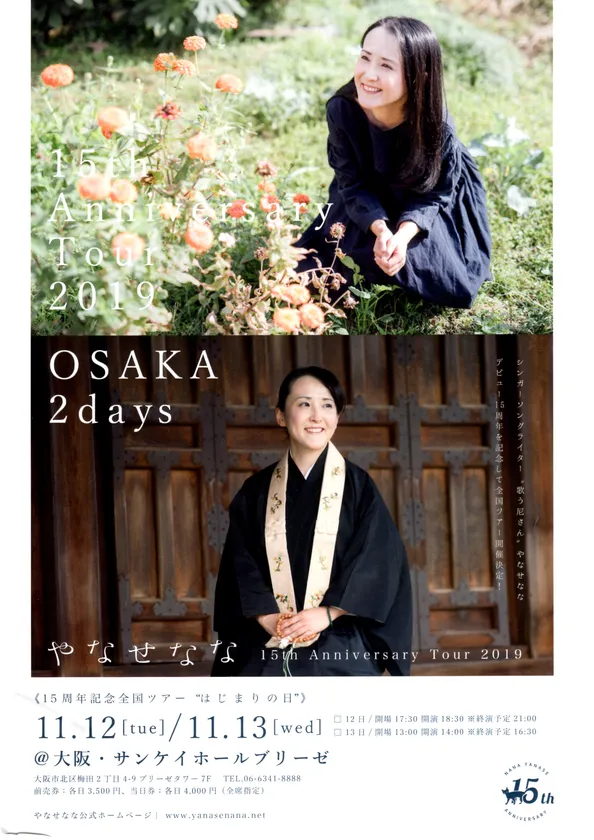 その歌声を聞くと涙が止まらないと話題の “歌う尼さん”やなせななデビュー15周年記念コンサート 「はじまりの日」大阪・サンケイホールブリーゼにて11月開催!