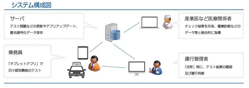 高齢化が進むバス・タクシー・トラックなどの運輸・運送事業者における乗務員・ドライバーですが、高齢化に伴う認知機能の検査は年1回(特定業務従事者健康診断の場合は半年に1回)健康診断時及び運転免許証更新時に限られており、人命を預かる乗務員・ドライバーの安全対策としては十分なものとは言えません。