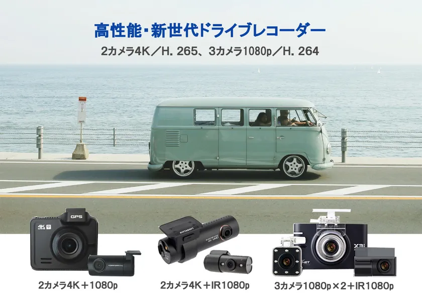 高性能・新世代ドライブレコーダー登場! 2カメラ4K、3カメラ1080pドライブレコーダーを発売 ~新世代H.265/HEVCコーデック方式採用~