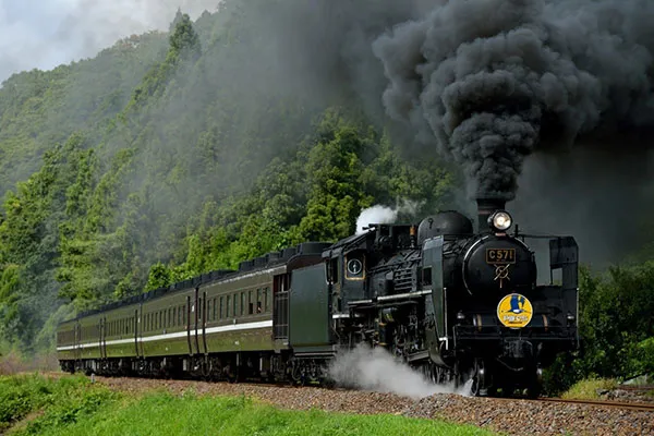 今年8月1日に運行開始から40周年を迎えます。「貴婦人(C57型)」「デゴイチ(D51型)」の愛称で親しまれているSLが、汽笛を響かせて走ります。