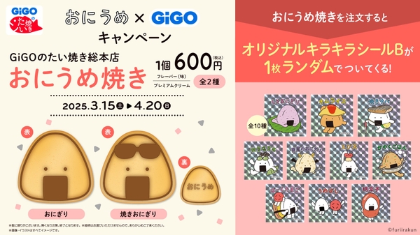 株式会社GENDA GiGO Entertainment(本社:東京都港区 代表取締役社長:二宮 一浩 以下「当社」)は2025年3月15日(土)より、SNSで大人気のキャラクター「おにうめ」の限定景品やコラボたい焼きを展開いたします。また景品の展開に合わせて対象のクレーンゲームに500円を投入すると、キラキラシールがもらえるキャンペーンも開催いたします。