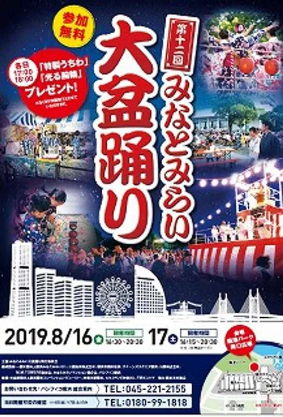 みなとみらい大盆踊り実行委員会(所在地:横浜市西区、委員長:藤田 格)は、2019年8月16日(金)~8月17日(土)の2日間、『第12回みなとみらい大盆踊り』を、臨港パークにて開催します。