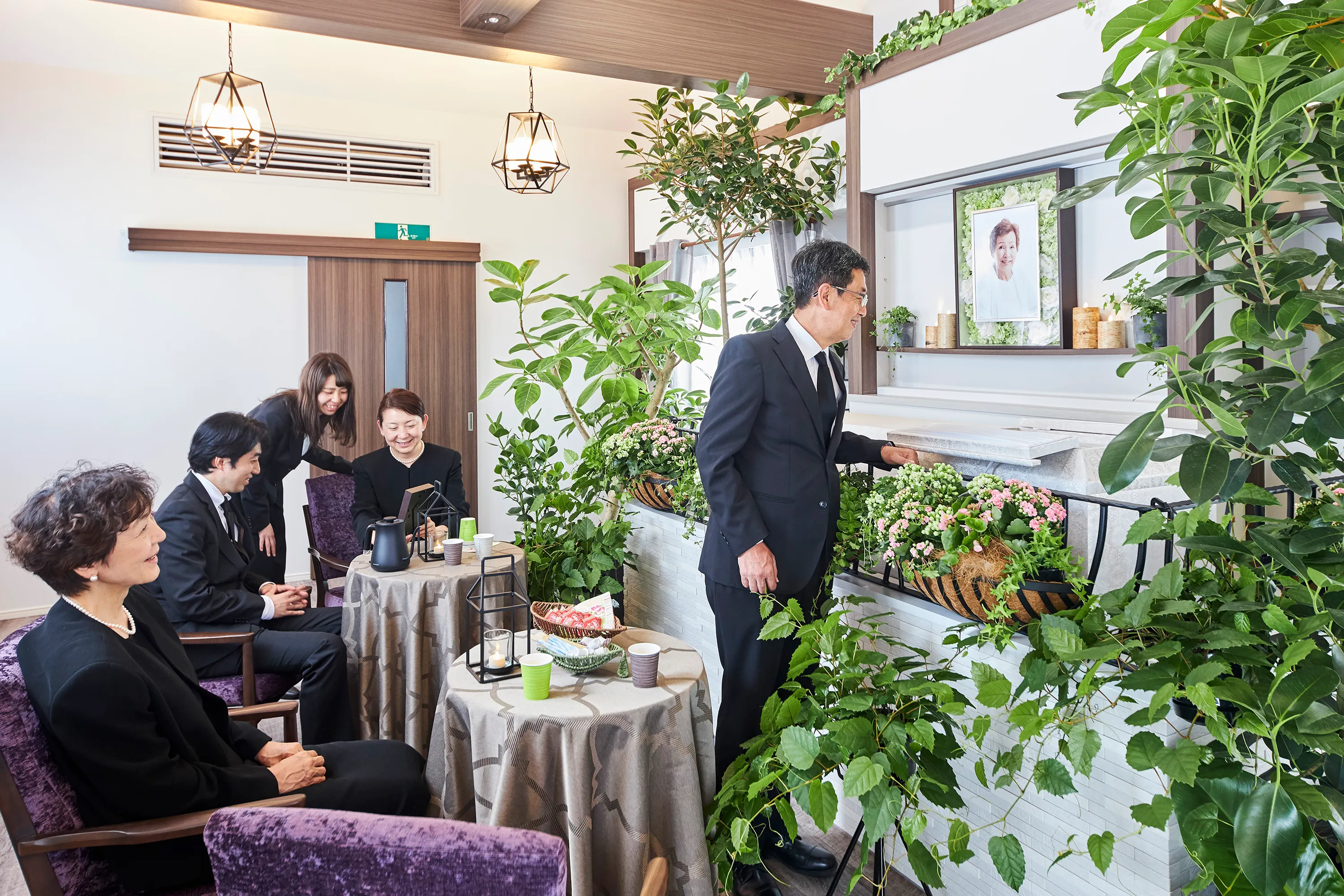 4. お別れの時間: 1F式場にてゆったりとご家族でお別れの時間を過ごしていただきます