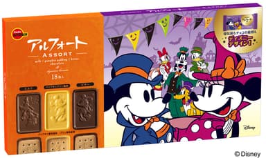 ミルク味、パンプキンプリン風味、ビター味の3種類の味をアソートしたハロウィン限定のアルフォートです。アルフォートのおいしさはそのままに、ディズニーキャラクターのレリーフがついたチョコレートで、食べる楽しさが広がります。