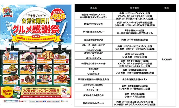 95周年記念グルメとして、第101回全国高等学校野球選手権大会期間中に次のメニューを販売します。