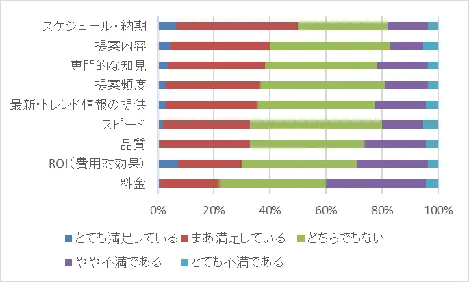 ・外部業者の不満足トップ3は「料金」(40%) 「ROI」(29.1%)「品質」(26.4%)