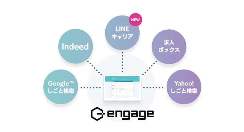 『engage』 は2016年8月にローンチし、2019年5月に利用企業数20万社を突破しました。すでに連携している「Google しごと検索」、「Indeed」に加え、今後『LINEキャリア』にも求人を同時掲載していくことで、送客力を強化。企業の採用活動をさらにサポートいたします。