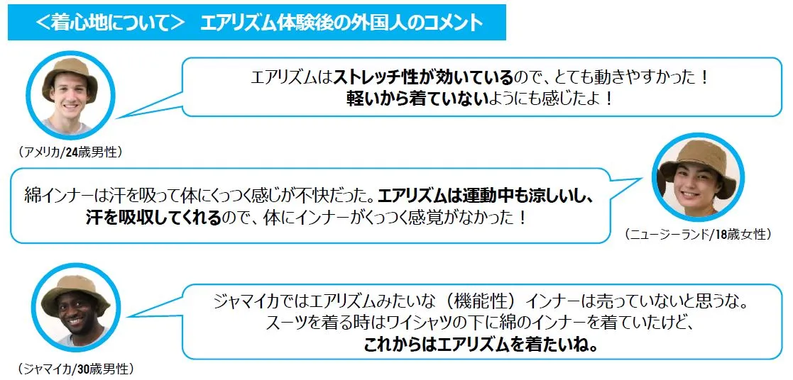 <着心地について> エアリズム体験後の外国人のコメント