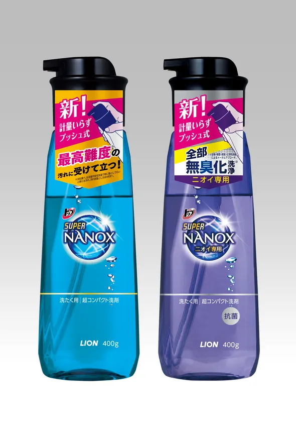 衣料用洗剤「トップ スーパーNANOX」にプッシュボトルタイプ登場 プッシュ回数で洗剤量が調整できる!通常/ニオイ専用の2種