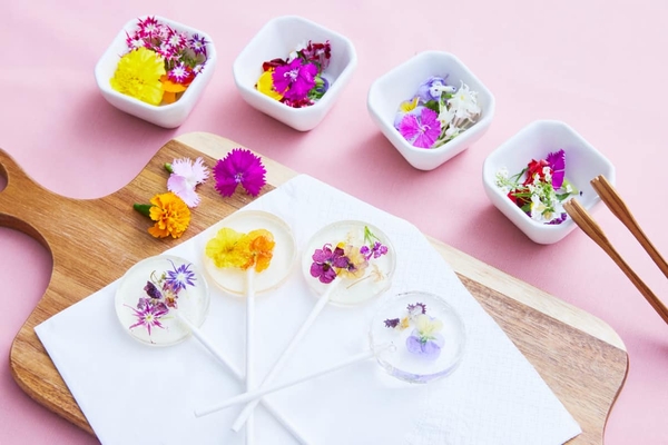 イベント期間限定で、咲き誇る花をイメージした「エディブルフラワーのキャンディづくり」を実施します。好みの花びらを選び、キャンディに閉じ込めれば春らしいオリジナルのキャンディの出来上がりです。リボンをあしらい、お土産として持ち帰ることもできます。