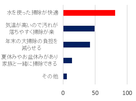 等、気温面や、お子様の長い夏休み期間であることを理由に年末以外に夏のタイミングでも大掃除する方がいることがわかります。