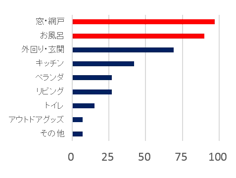 夏の時期に特に目が行く「窓・網戸」が上位に!