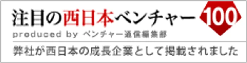 注目の西日本ベンチャー100は、(1)ビジネスモデルの可能性・独自性、(2)地域貢献(社会貢献)という二つの視点から、今後、注目すべき西日本のベンチャー企業を選考して認定されます。