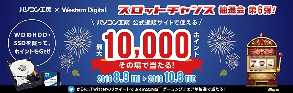 パソコン工房&ウエスタンデジタル コラボ企画 その場で当たるスロットチャンス抽選会 第6弾! 最大10,000ポイントがあたるキャンペーン!!