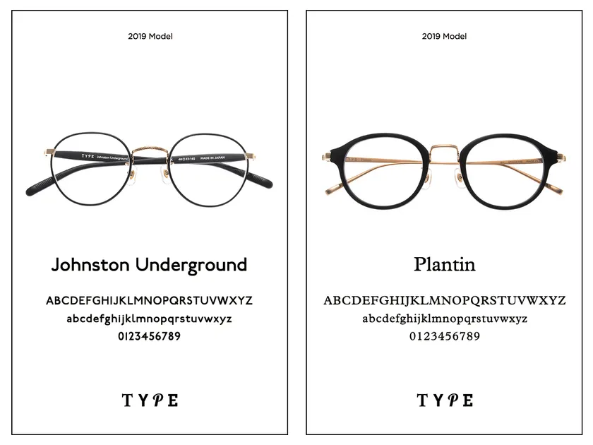 オーマイグラス株式会社(本社:東京都港区)は、書体(typeface)を選ぶように眼鏡のデザインを選ぶ、というコンセプトのアイウェアブランドTYPE(タイプ)に、この度、新たに「Johnston Underground(ジョンストン アンダーグラウンド)」「Plantin(プランタン)」の2モデルが登場することをお知らせします。