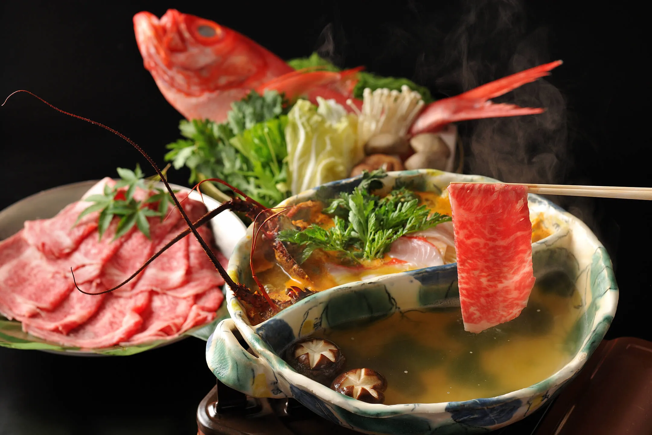 【界 鬼怒川】龍神のダイナミックさを表現した「伊勢海老と牛ロースの龍神鍋」
