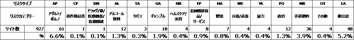6. リスクカテゴリー分類は15項目、同載広告チェックではLA:言語を除く14項目とした。****