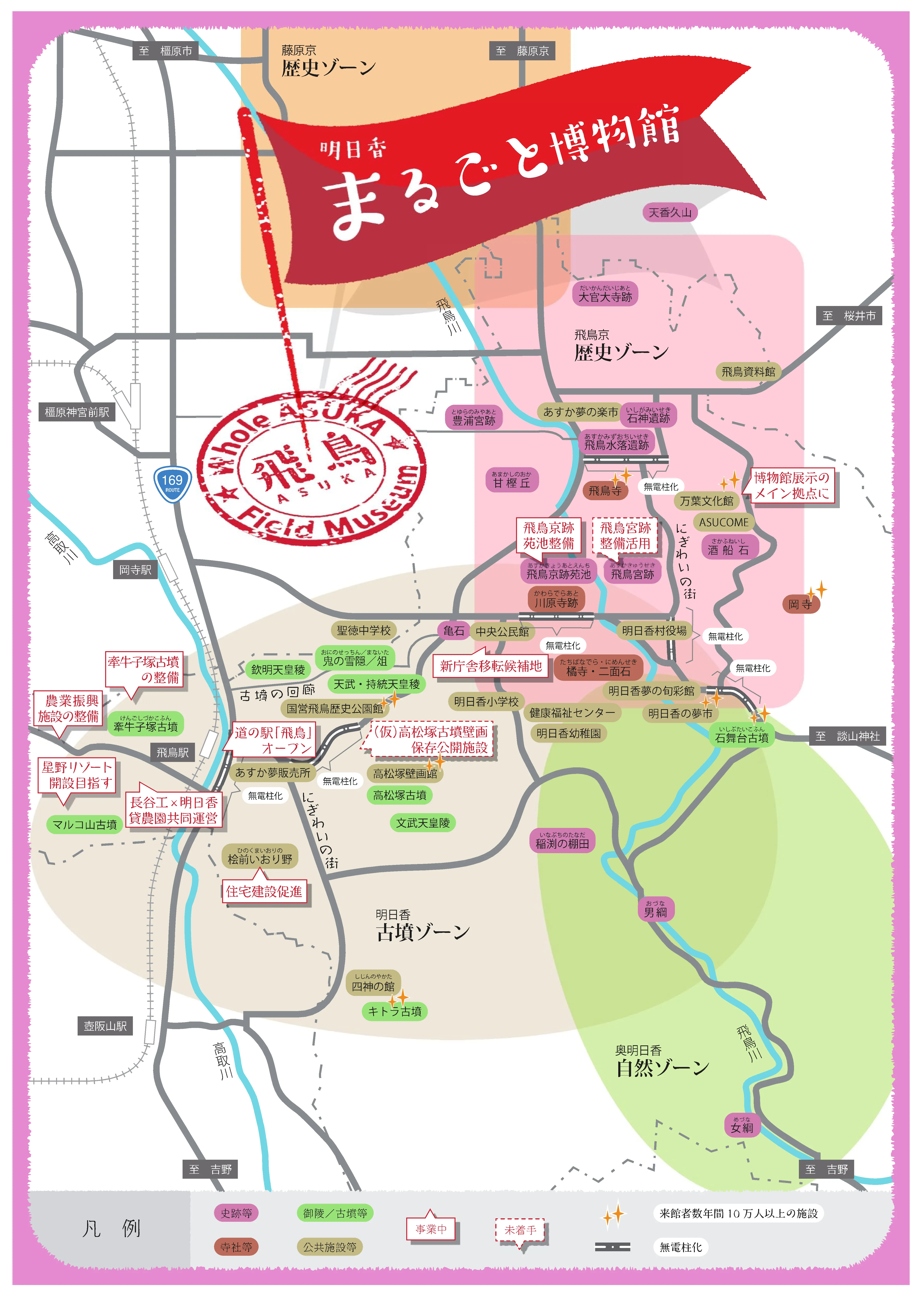 明日香村は、推古天皇や聖徳太子、蘇我馬子、小野妹子などの偉人が活躍し、日本の中央集権律令国家が誕生した場所です。石舞台古墳やキトラ古墳、高松塚古墳、日本で最初に本格的な伽藍配置を取り入れた法興寺(飛鳥寺)など、多数の史跡が存在します。地域の景観を守るため、通称「明日香法」と呼ばれる特別措置法により、日本国内で唯一、行政区域内の全域が歴史的風土保存地区に指定されています。これらは日本が世界に誇れる観光資源であり、大きな潜在力を持つ地域です。