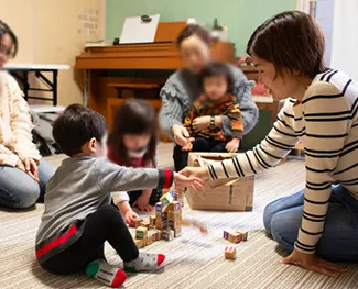 手遊びや動物のまねっこをしたり、みんなで楽しみながら英語と