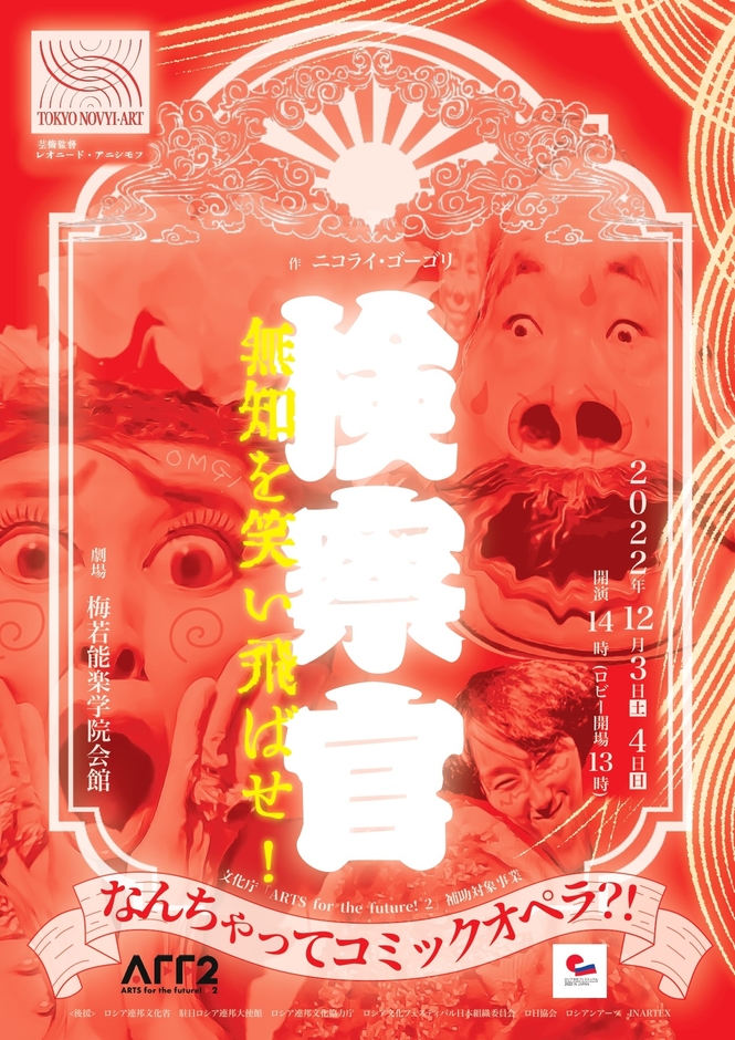 認定NPO法人 TOKYO NOVYI・ART 能楽堂公演「検察官」が2022年12月3日 (土) ~ 12月4日 (日)に梅若能楽学院会館(東京都中野区)にて上演されます。チケットはカンフェティ(運営:ロングランプランニング株式会社、東京都新宿区、代表取締役:榑松 ⼤剛)にて発売中です。