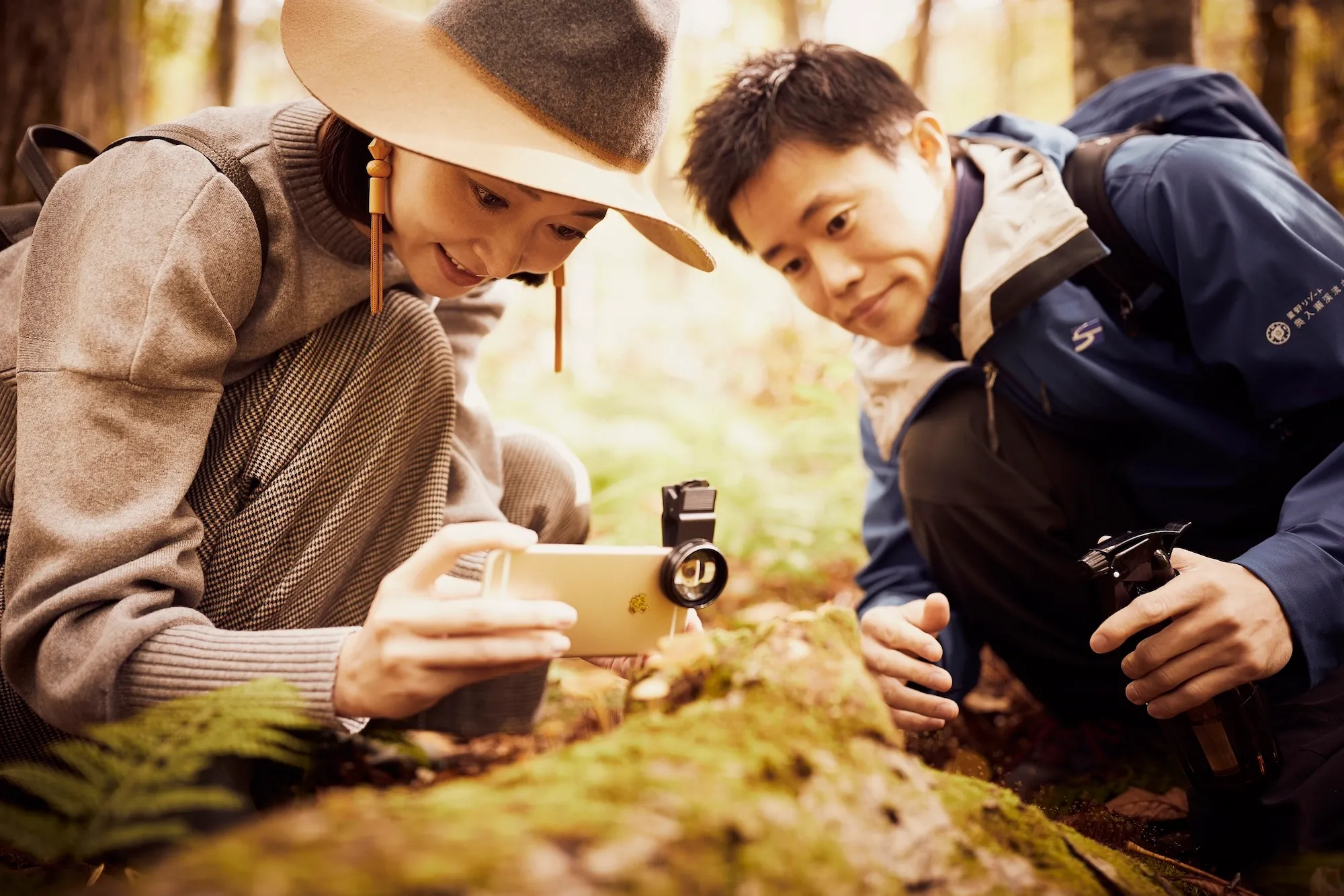 まず、ネイチャーガイドが、参加者が撮影したい動画についてヒアリングし、その内容をもとに、撮影場所を提案します。例えば、友人同士の旅の思い出を残したい方には、旅行を楽しむ様子の撮影に最適な場所に案内します。秋らしい自然の景色を撮影したい方には、奥入瀬渓流の隠れた名所や、紅葉やきのこの見どころを提案します。また、撮影用ツールを貸し出したり、ネイチャーガイドが参加者の動画を撮ったりと、サポートを行います。