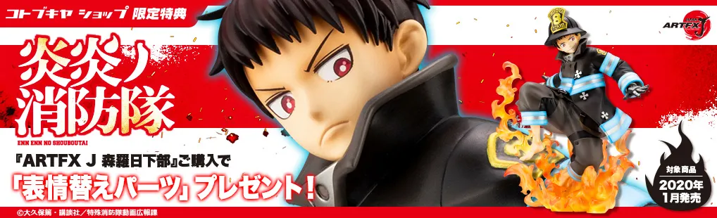 現在放送中の 灼熱のダークバトルファンタジーアニメ『炎炎ノ消防隊』より、 "ヒーロー"を目指す消防官の主人公「森羅日下部」が 「ARTFX J」シリーズで立体化!