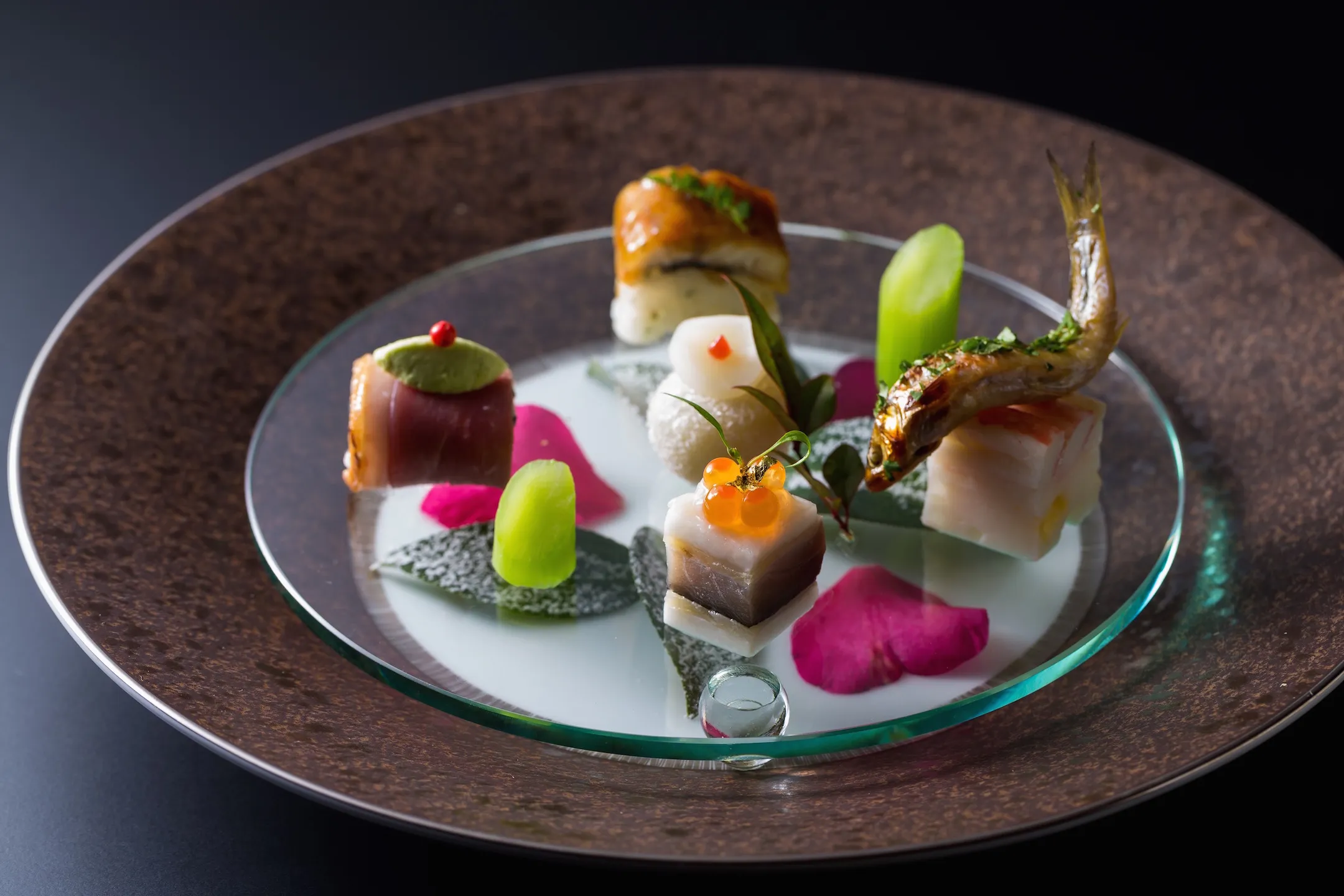 五味自在には、日本料理の本質を追求しながらも、その枠にとらわれず、食材や調理法を自在に取り合わせるという意味が込められています。