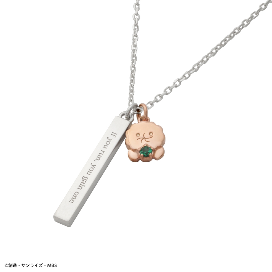 『機動戦士ガンダム 水星の魔女』のスレッタ・マーキュリーをイメージしたシルバーネックレスです。印象的なセリフ「If you run,you gain one but if you move forward,you gain two.」の刻印が施されたバータイプのトップに、ホッツさんのチャームをセット。シンプルで普段使いしやすいデザインに仕上げました。