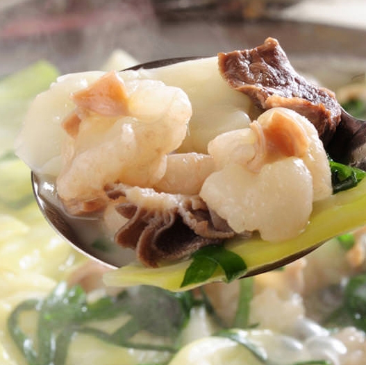 ベースには、8時間かけてじっくり煮込んだ鶏がらスープを使っています。手間暇かけた鶏がらスープで、あっさりとした水炊き風の味わいです。