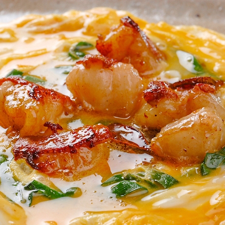 もつとじは、ニラとじの中央にもつ焼きを乗せた「もつとじ」と、ニンニクたっぷりの「塩もつとじ」があります。