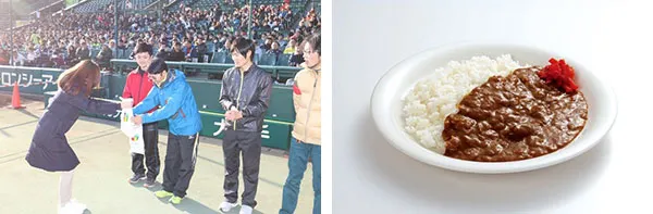 左から)表彰式・お楽しみ抽選会の様子、甲子園カレー