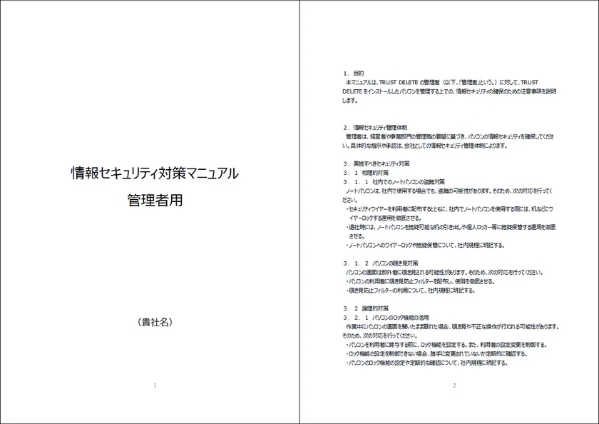 本マニュアルは、管理者に対して、TRUST DELETEをインストールしたパソコンを管理する上での、情報セキュリティの確保のための注意事項を説明します。