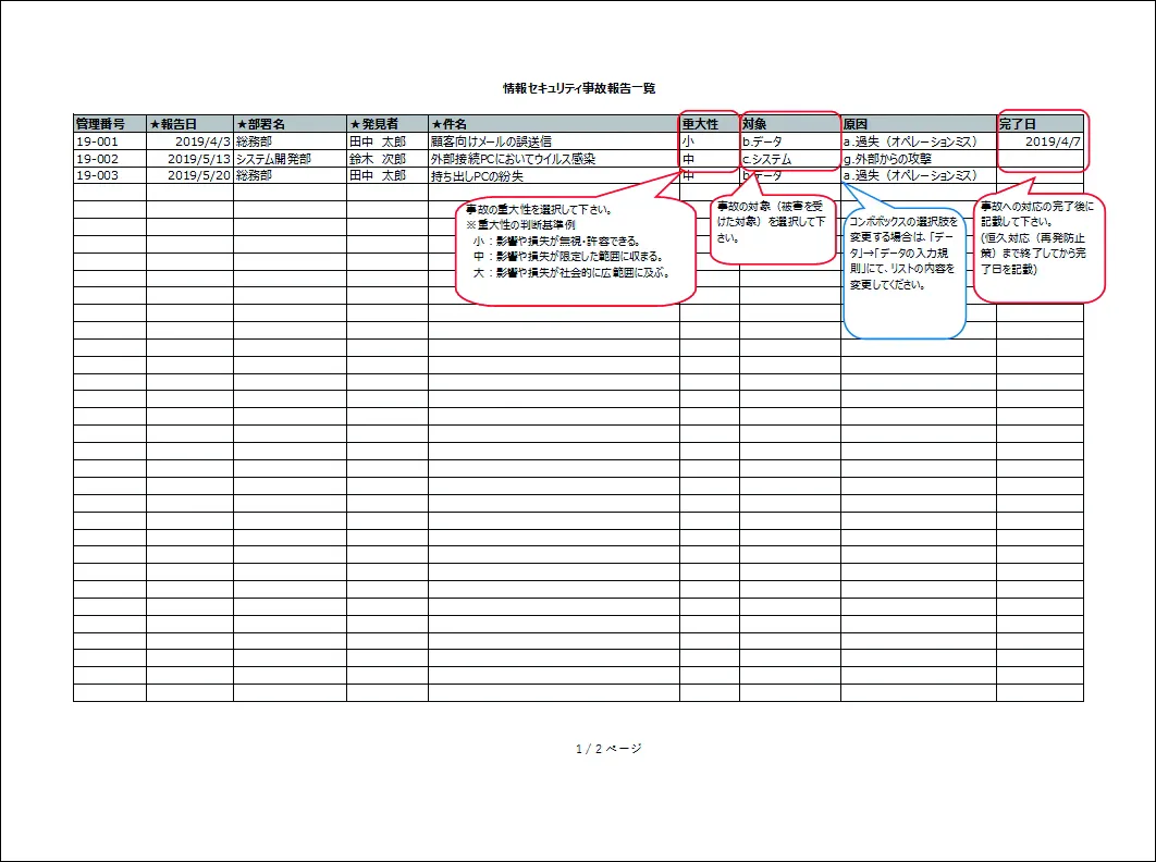 本資料は万が一、パソコンを紛失してしまった場合等に事故を管理するためのテンプレートになります。