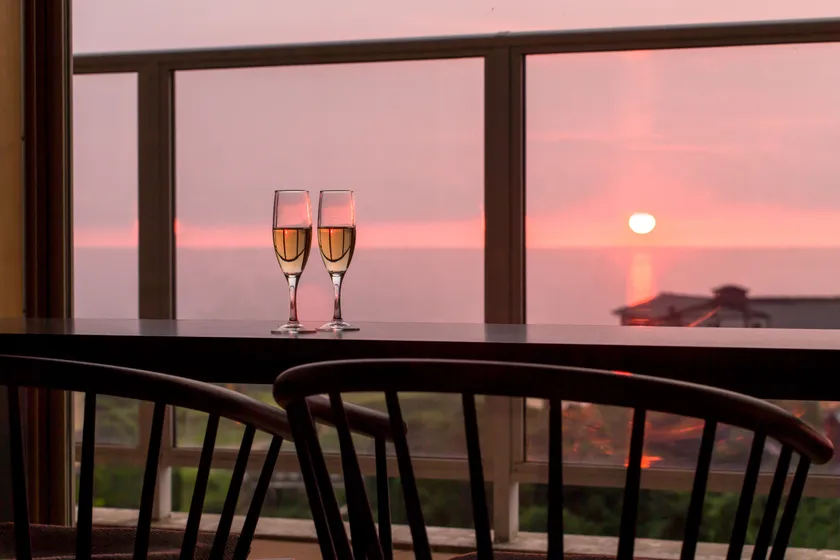 よりゆったりとしたルームレイアウトに雄大なピクチャーウィンドウ、夕日を眺めつつ入れる各部屋の展望温泉など、大人のためだけの贅沢な設備を充実。