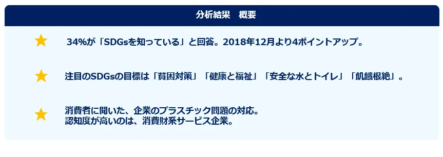 34%が「SDGsを知っている」と回答、半年前より向上。 注目の目標は「貧困対策」「健康と福祉」「安全な水とトイレ」「飢餓根絶」 ー『不満買取センター』ユーザーアンケートー