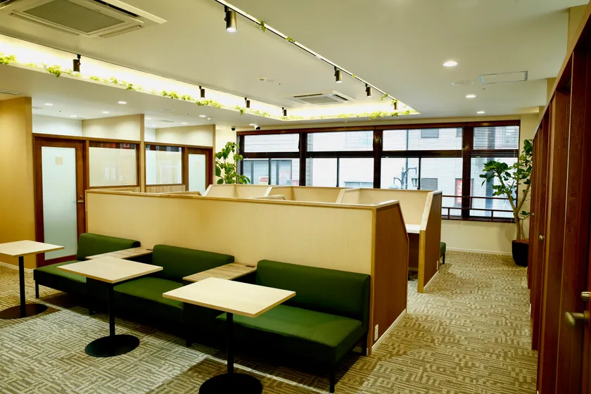仕様:専用デスク11室(2人×4室、1人×7室)・フリーデスク17席・ラウンジ10席・会議室2室・テレフォンブース