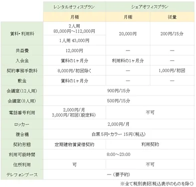 料金表(シェアオフィス)