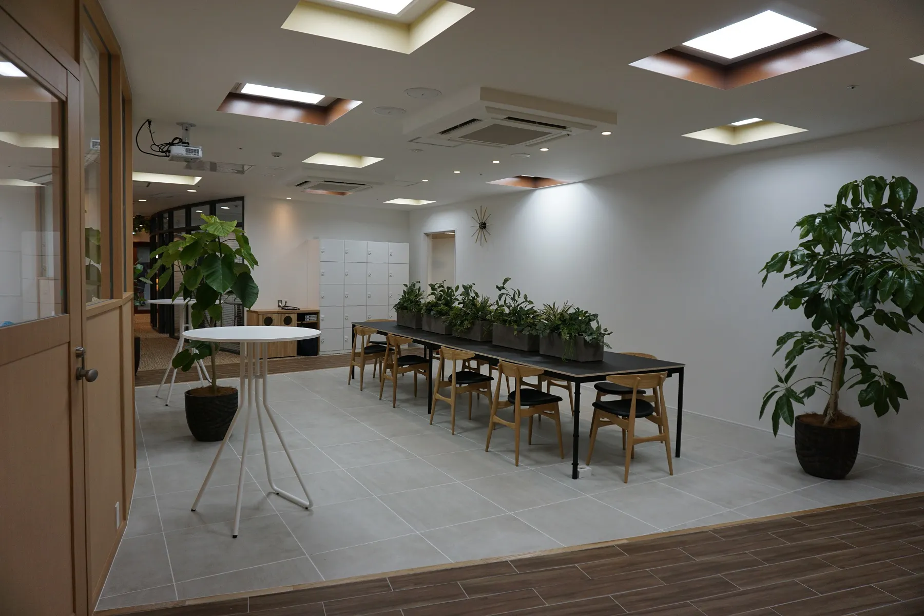 約400m2の広々とした空間には、グリーンを配した優しく落ち着いた雰囲気に加え、各所セキュリティを整備しており安全・安心な管理体制で運営いたします。