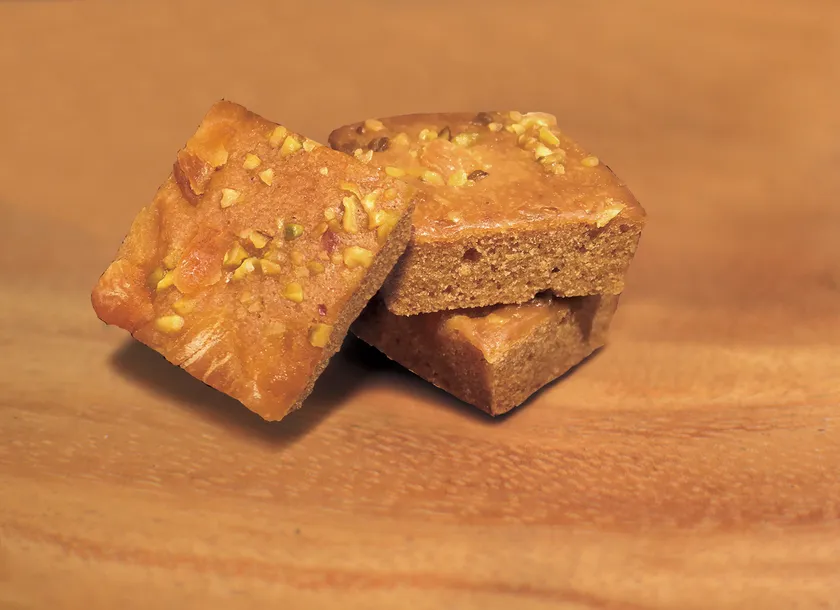 今回は、第2弾の「キャラメルとアプリコット」が池袋東武に初登場です。「キャラメルとアプリコット」は、ドライアプリコットとピスタチオをふりかけて焼き上げた、キャラメル風味のブラウニーです。キャラメルの甘みと、ドライアプリコットの酸味をお楽しみ頂けます。