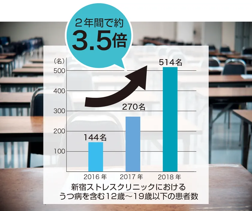 医療法人社団 翔友会 新宿ストレスクリニック(東京都港区、理事長:綿引 一)では、2年間で約3.5倍の受験期のうつ病(以下、受験うつ)を含む12歳~19歳以下のうつ病患者さんが来院しています。受験生や受験生を持つ親御さんにとって安心できるうつ病治療をお伝えいたします。