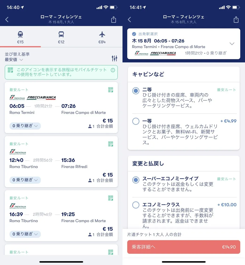 *ヨーロッパ内の交通機関を一括で比較、検索
