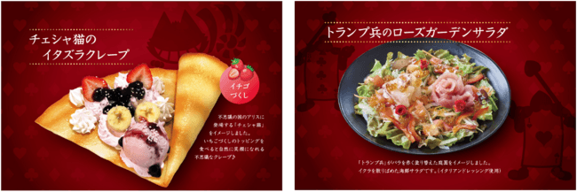 女性はもちろん、意外にも男性のファンが多い「マリオンクレープ」の限定メニュー、物語のワンシーンからインスピレーションを受けて生まれたサラダなど、美味しい、楽しいお手頃価格のメニューをお楽しみください。