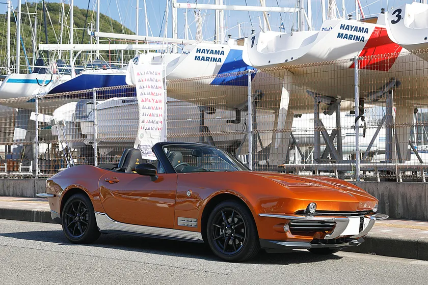 ベース車両は現行マツダロードスターとなり、旧き良きアメ車を彷彿とさせるグラマラスなボディを身に纏う、先進のマツダテクノロジーと光岡のクラフトマンシップによる造形美が融合した珠玉のライトウエイトスポーツカーです。おもしろレンタカー祐天寺店では遊び心あふれるシスコオレンジカラーのロックスターを用意しました。