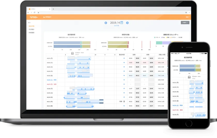 働き方改革が叫ばれ、労働時間の上限規制など、労働法を取り巻く環境は劇的に変化しており、世の中の関心事にもなっています。勤怠管理のサービスは以前から世の中に多数ありますが、ラクローはコンプライアンスの視点が圧倒的に異なります。