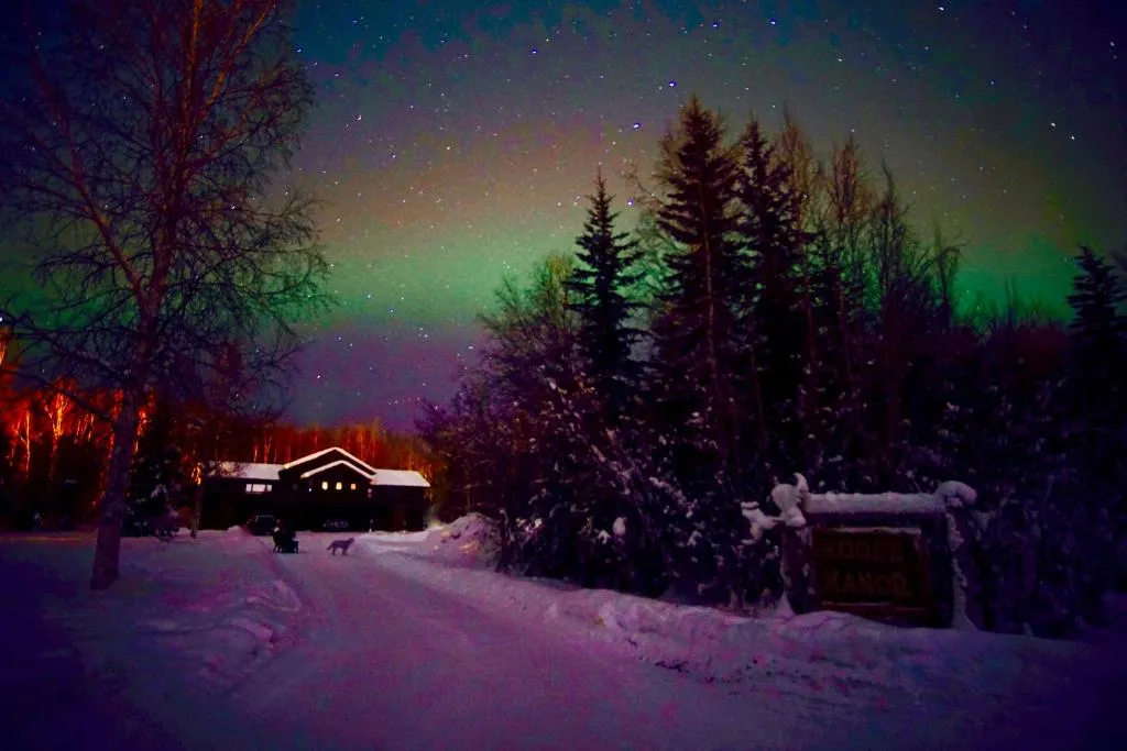 広い部屋とスイートルームが自慢のフェアバンクス ムース マナー B&B(Fairbanks Moose Manor B&B)は、街からわずか数分の場所にあり、アラスカ流のおもてなしと自家製の朝食を提供しています。地域には光害がほぼないため、快適な部屋から美しいオーロラを見ることができます。