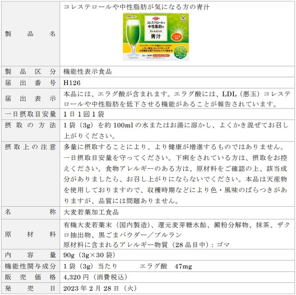 コレステロールや中性脂肪が気になる方に タブレットと青汁2つの機能性表示食品を発売